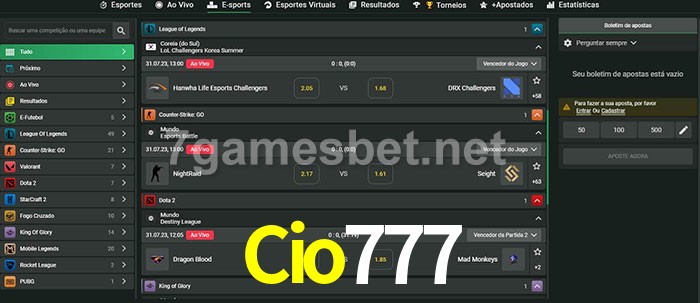O Cio777 oferece uma grande seleção de opções de apostas em e-sports com probabilidades competitivas